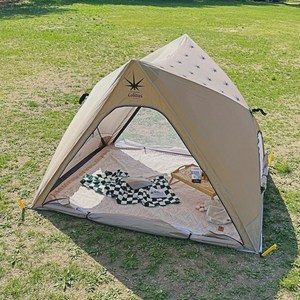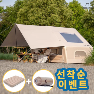 아르벨리 간편한 에어텐트 원터치 에어매트 캠핑용품 글램핑 감성 그늘막 타프 4인가족 공기 주입식 대형 텐트, 베이지 3-4인용