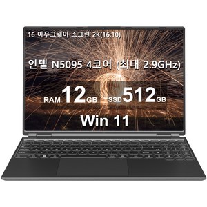 16 노트북 12GB+512GB 인텔 N5095(최대 2.9Ghz) 4코어 Win 11 2.5K FHD (냉각팬 포함) 듀얼 WiFi 지원 1TB SSD 확장-검은색, WIN11 Pro, 검은색, 12GB, 512GB, A6