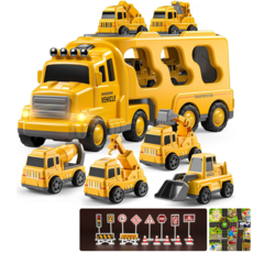 다양한 중장비 차량이 포함된 장난감 세트로, 아이들이 운전 놀이와 건설 놀이를 즐기며 상상력과 손재주를 키울 수 있는 제품입니다.