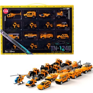 중장비 모형 미니카 15종이 포함된 세트로, 아이들이 다양한 건설 놀이와 운전 놀이를 즐기며 상상력과 손재주를 키울 수 있는 장난감입니다.