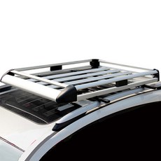 SUV 차량 지붕에 장착 가능한 루프바스켓으로, 짐을 안전하게 싣고 운반할 수 있으며, 가로바는 별도 구매, 세로 140cm 실버 컬러로 견고하고 다양한 짐 운반에 적합한 제품입니다.