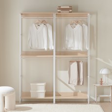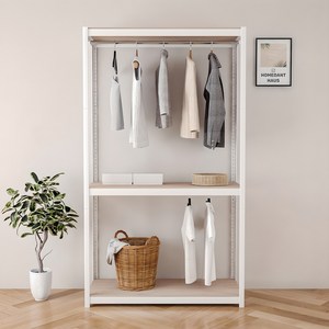 깔끔한 디자인의 2단 행거형 드레스룸으로, 옷과 소품을 효율적으로 수납할 수 있으며 튼튼한 구조로 안정적으로 사용할 수 있는 방문 설치형 세트입니다.