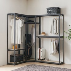 코너형 디자인으로 공간 활용이 뛰어나며, 튼튼한 구조와 방문 설치 서비스로 편리하게 사용할 수 있는 블랙 색상 2700 행거입니다.