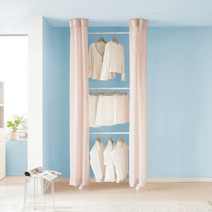 이지온 우먼스 3단 철재 고정식 드레스룸 시스템 옷걸이 커튼 행거 EW-S213, 핑크