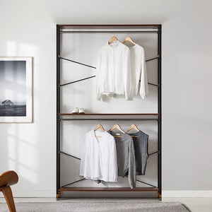 상도가구 모던하임 시스템 행거 조립식 철제 수납 드레스룸 시리즈, 월넛(블랙프레임)