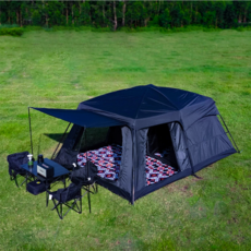 4~6인용 대형 에어텐트로, 사계절 사용이 가능하며 빠른 설치와 해체가 용이하고, 넓은 내부 공간과 그늘막 기능으로 가족 캠핑이나 글램핑에 적합하며, 튼튼한 소재로 내구성이 뛰어난 제품입니다.