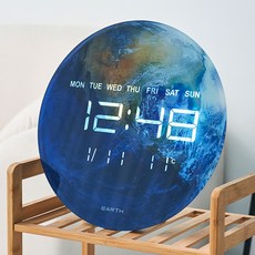 지구 모양 디자인과 LED 디스플레이가 결합된 벽시계로, 인테리어 효과가 뛰어나며 탁상 겸용으로 다양한 공간에서 시간 확인이 가능합니다.