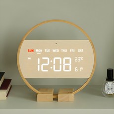 혼합색상 우드 프레임과 LED 디스플레이가 결합된 벽시계로, 시간과 날짜를 쉽게 확인할 수 있으며 모던한 디자인으로 다양한 공간에 어울립니다.