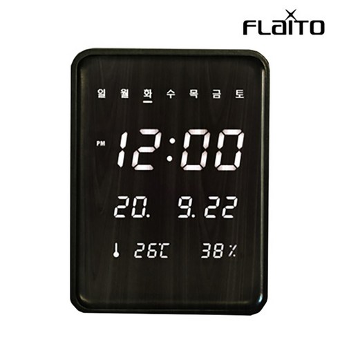 대형 LED 디스플레이와 우드 프레임이 결합되어 인테리어 효과가 뛰어나며, 시간과 날짜, 온도 정보를 한눈에 확인할 수 있는 벽시계입니다.