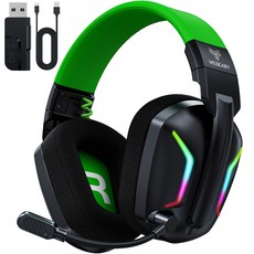 WESEARY 무선 게이밍 헤드셋 3D사운드 블루투스5.4 노이즈 캔슬링 마이크 WG1, 블랙 그린