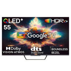 55인치 4K QLED 화면으로 선명하고 생생한 화질을 제공하며, 스마트 구글 TV 기능과 마이크 컨트롤로 다양한 앱과 음성 명령 사용이 가능하고, eMMC 32G 저장공간을 갖추어 방문 설치가 가능한 스탠드형 TV입니다.