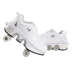 liekick 쿼드 스케이트 스케이트 개폐식 롤러 슈즈 휠 스니커즈롤러 스케이트롤러슈즈, 조명이 없는 흰색 로우힐, 1개
