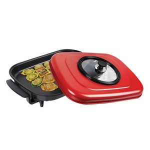 대형 사각 설계로 대량 요리가 가능하며, 스톤 코팅으로 뛰어난 내구성과 논스틱 성능을 제공하고, 균일한 열 분포로 음식이 골고루 익으며, 전기 방식으로 간편하게 사용 가능하고, 청소와 보관이 편리한 프리미엄 전기 그릴입니다.