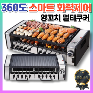 360도 자동 회전 기능으로 꼬치를 고르게 익힐 수 있으며, 바베큐와 캠핑용 요리에 적합하고, 멀티쿠커 기능으로 다양한 조리 방식이 가능하며, 간편한 전기 사용으로 실내외 활용 가능하고, 청소와 보관이 편리한 멀티 그릴입니다.