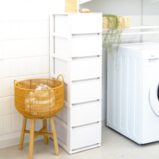 모던한 디자인과 화이트 색상으로 공간 활용이 뛰어난 6단 틈새 서랍장 세트로, 작은 공간에도 효율적으로 수납할 수 있는 제품입니다.
