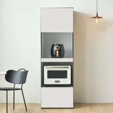 멀티렌지와 주방 소품을 효율적으로 수납할 수 있는 600mm 폭의 틈새 수납장으로, 코타화이트 색상과 슬림한 디자인으로 좁은 공간에서도 깔끔하게 활용 가능한 제품입니다.