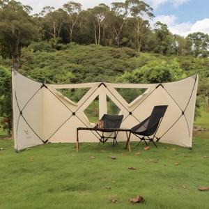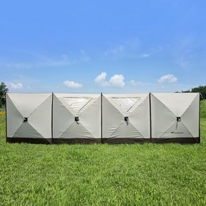시마운트 원터치 윈드스크린은 캠핑용 사이드월 바람막이로, 4단 구조로 안정적이며 설치가 간편하고 야외에서 바람과 날씨로부터 보호해주는 샌드베이지 색상의 제품입니다.