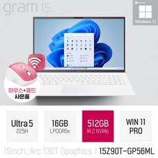 LG 2025 그램15 15Z90T-GP56ML 울트라5 225H / 고사양 영상편집용 대화면 얇고 가벼운 AI 노트북 [무선 마우스 패드], WIN11 Pro, 16GB, 512GB, 에센스 화이트
