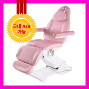 한의원, 물리치료실, 미용실 등에서 활용 가능하며, 전동으로 높낮이와 각도 조절이 가능하고 접이식으로 보관이 편리한 핑크색 미용 베드.
