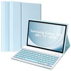 삼성 갤럭시탭 A9플러스 11인치 블루투스 키보드 케이스는 11인치 태블릿에 맞춰 설계된 블루투스 무선 키보드가 포함된 케이스로, 한글 각인이 되어 있어 타이핑이 편리하며 푸른 색상으로 스타일리시한 디자인이 특징이다.