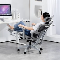 KURUA 인체공학 3D 허리보호대 게이밍 컴퓨터 사무용 의자, 그레이