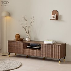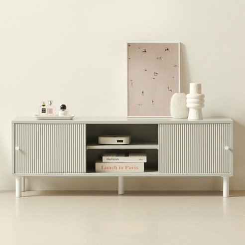 세련된 템바보드 디자인과 슬라이딩 도어가 적용된 다리형 거실 선반장으로 실용적인 수납과 깔끔한 공간 연출이 가능하다.