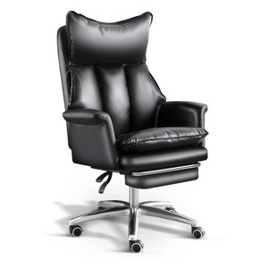고급 가죽 소재와 180도 리클라이닝 기능을 갖춘 중역용 의자로, 편안한 착석감과 회의·휴식 시 모두 적합한 블랙 컬러의 실용적인 사무용 의자입니다.