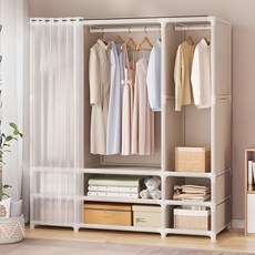 헤이빌리 조립식 옷장 커튼 옷걸이 행거, 화이트