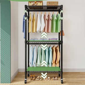 이동식 스탠드 드레스룸 행거 프리미엄 철제 튼튼한 대용량 선반 옷장-MEFUN, 블랙
