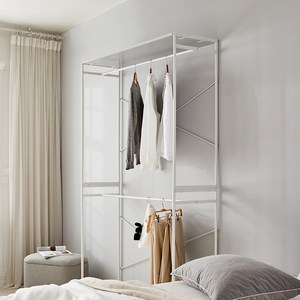 상도가구 하운트 2단 철제 행거는 튼튼한 철제 구조로 안정적이며, 코너형 설계로 공간 활용도를 높이고, 의류와 소품을 효율적으로 정리할 수 있는 드레스룸용 시스템 옷장입니다.