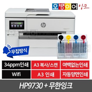 - HP 9730 A3 무한잉크 복합기는 A3 크기까지 출력이 가능함