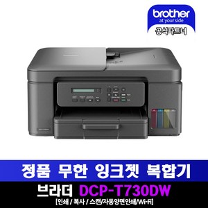 브라더 DCP-T730DW (잉크포함) 정품 무한 잉크젯 복합기 인쇄 복사 스캔 무선WiFi 자동양면인쇄 헤드셀프크리링