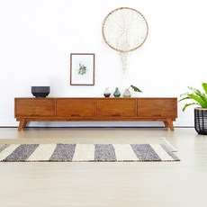 자연스러운 원목 소재로 제작되어 따뜻한 느낌을 주며, 넓은 수납 공간과 견고한 구조로 대형 TV와 다양한 소품을 효율적으로 정리할 수 있는 거실장입니다.