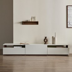 확장형으로 공간에 맞춰 길이 조절이 가능하며, 서랍 수납이 있어 깔끔하게 정리할 수 있는 TV 다이 거실장으로 그레이화이트 색상으로 모던한 분위기를 연출합니다.