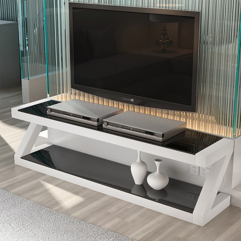 모던한 디자인과 강화유리 상판으로 깔끔하며 넓은 수납 공간을 갖춘 TV거실장으로, 다양한 크기의 TV와 소품을 안전하게 진열할 수 있는 제품입니다.