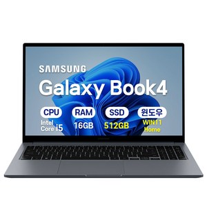 삼성 갤럭시북4 인텔 i5 15.6인치 사무용 학생용 업무용 인강용 가성비 노트북, 그라파이트, NT750XGR-A51A, 512GB, 16GB, WIN11 Home