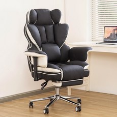 편안한 착석감과 승강 및 회전 기능을 갖춘 고급 가정용 컴퓨터 의자로, 게이밍, 공부, 사무용 및 회의용으로 모두 적합하며 세련된 화이트블랙 디자인을 제공합니다.
