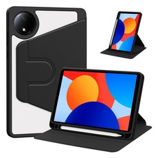 샤오미 레드미 패드 SE 8.7 케이스 회전 북커버, 블랙, 1개