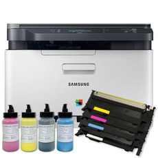 컬러 인쇄, 복사, 스캔, 팩스 기능을 갖춘 삼성 레이저 복합기로, 리필 가능한 무한 토너 시스템으로 장시간 안정적인 출력이 가능하며, 사무용으로 적합한 제품입니다.