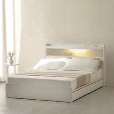 화이트 색상의 LED 조명 수납 SS침대 프레임으로 세련된 디자인과 효율적인 수납 공간을 제공하며 깔끔한 침실 연출이 가능한 제품입니다.