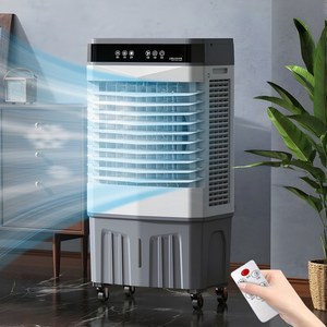 AI 기술이 적용된 스마트 절전 에어쿨러로, 가정용 이동식 냉풍기 기능과 친환경 설계를 갖추어 효율적인 냉방과 에너지 절약을 동시에 실현하며 회색 디자인으로 어느 공간에도 잘 어울립니다.