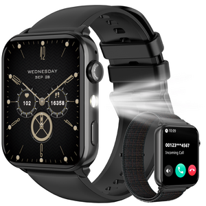 IOWODO R30MAX 스마트워치 1.91인치 HD 곡면 디스플레이 통화 가능 메시지 알림 수면 추적 100가지 이상 운동 모드 LED 손전등 IP68 방수, 검은색, 3.7cm, 블루투스
