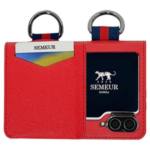 스메르 루미노스 가죽 링고리 케이스는 고급 가죽 소재로 제작되어 힌지를 보호하고, 링고리로 안정적인 그립과 거치가 가능하며, 카드 수납 기능으로 실용성을 갖춘 휴대폰 케이스입니다.