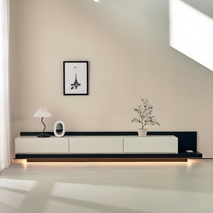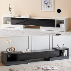 블랙과 화이트 투톤 디자인의 2300 확장형 거실장으로, LED 조명과 넉넉한 수납 공간을 갖춰 거실을 깔끔하고 세련되게 연출할 수 있는 제품입니다.