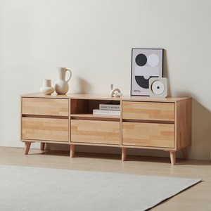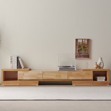 원목 소재로 제작되어 자연스러운 분위기를 제공하며, 확장형 구조로 공간에 맞게 길이 조절이 가능한 TV 거실장입니다.