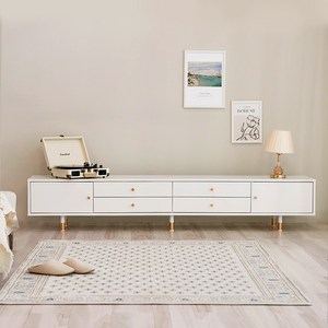 화이트와 골드 컬러 조합으로 세련된 분위기를 연출하며, 넉넉한 수납 공간과 방문 설치 서비스로 편리하게 사용할 수 있는 거실장입니다.