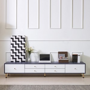 네이비와 화이트 컬러 조합으로 세련된 거실 분위기를 제공하며, 다양한 길이 옵션과 넉넉한 수납 공간으로 활용도가 높은 TV 거실장입니다.