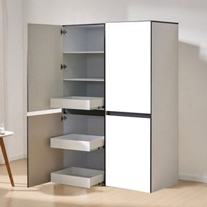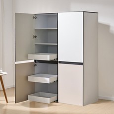 오픈형 디자인으로 홈카페와 주방 공간을 효율적으로 활용할 수 있는 수납장으로, 냉장고장과 팬트리장을 함께 구성해 다양한 주방용품을 깔끔하게 정리할 수 있는 제품입니다.