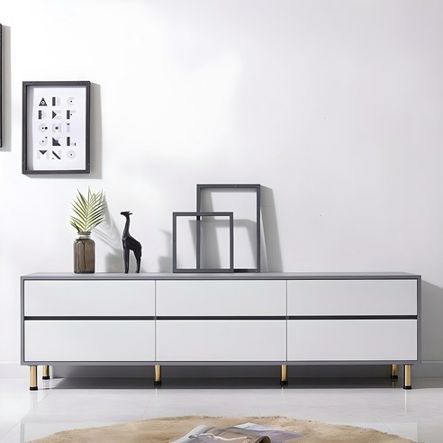 고무나무 소재와 화이트 마감으로 제작되어 내구성이 뛰어나며, 2단 구조로 넉넉한 수납 공간을 제공하고, 1200~1500mm 폭으로 선택 가능, TV다이와 거실장으로 활용할 수 있으며, 깔끔하고 모던한 디자인으로 거실 분위기를 밝게 연출할 수 있음.