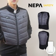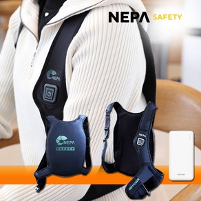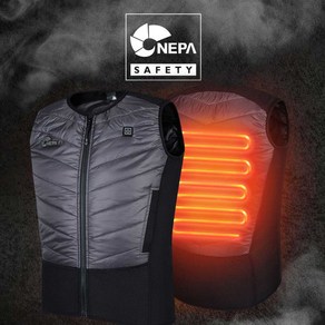 네파 Safety 패딩 발열조끼는 보조배터리와 함께 사용 가능하며, 내장 발열 기능으로 겨울철 야외 활동 시 따뜻함을 유지하고 가볍고 편안한 착용감을 제공한다.